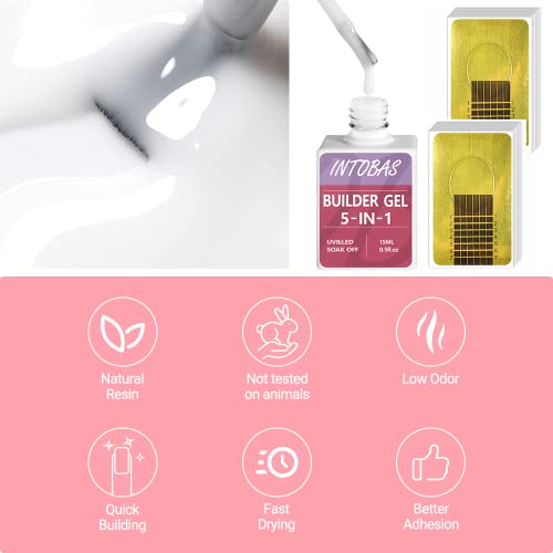 INTOBAS Kit Gel Ricostruzione Unghie Professionale 5 In 1, Builder Gel Unghie-15ml, Smalto Semipermanente Bianco Latte, Rubber Base Gel Unghie Con Cartine 100 Pezzi Per Acrigel Ricostruzione Unghie