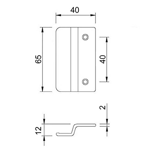 Distanza tra i fori 40 mm - Lunghezza 65 mm - Profondità di montaggio 12 mm.