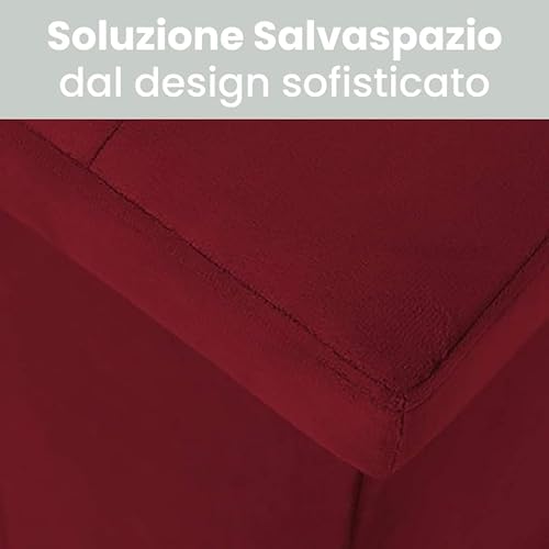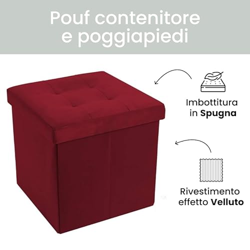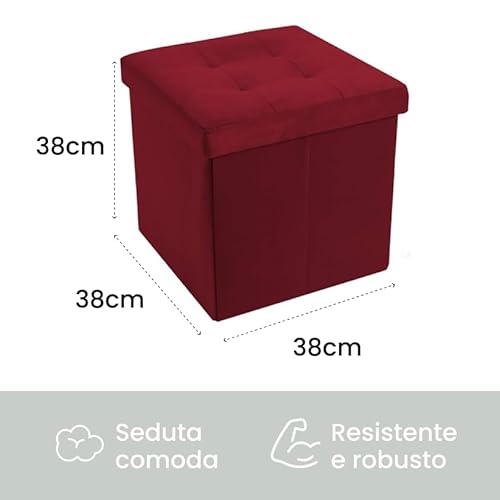 INTRECCI Pouf Contenitore Quadrato Bordeaux Imbottito In Velluto Pieghevole 38x38x38, Puffo Cassapanca Quadrato Per Libri Coperte Scarpe Giochi