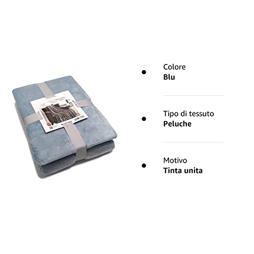 INTRECCI Plaid Coperta Morbida Tinta Unita, Coperte In Peluche Per Letto Divano Calde Soffici e Leggere (Blu, Coperta 2 Piazze)
