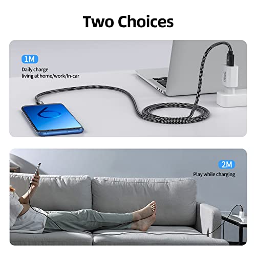 Cavo USB C [2 x 1 m + 2 m] Intrecciato Nero in Nylon per Samsung Galaxy S8/S9/S10/S20 Plus, Huawei, Xiaomi, Honor, Nokia, OnePlus, Caricatore Cavo rapido