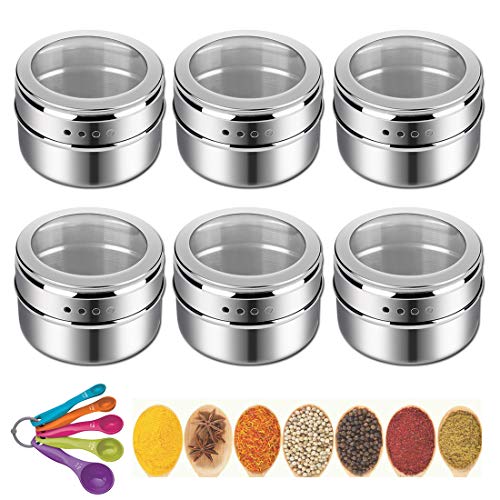 INTVN Barattoli per spezie 6 pezzi contenitori in acciaio inox con Coperchio trasparente & 5 pezzi Cucchiai di plastica per Cucina Barbecue