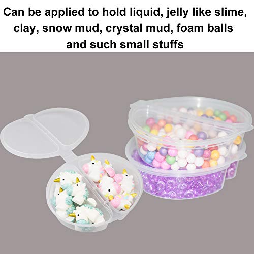Quantità: 20 pezzi scatola per slime a doppio scomparto in plastica con coperchi per il vostro utilizzo. Il contenitore può essere utilizzato più volte dopo la pulizia, il che è semplice e conveniente