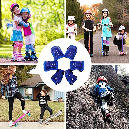 INTVN Set di Ginocchiere per Bambini, 2 * 6 in 1 Kit di Protezioni per Ginocchiere con Protezioni per i Polsi Regolabili Protezione dei Bambini per i Bambini Sicurezza per i Rollerblading Blu e Rosso