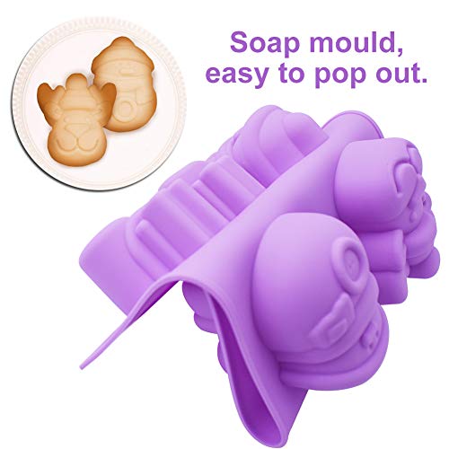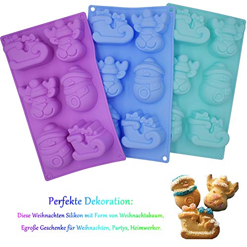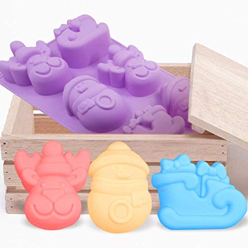 INTVN 3 Pezzi di Natale stampi in Silicone,stampi in Silicone con Motivi Natalizi, per Sapone, cioccolatini e Cupcake, a Forma di Pupazzo di Neve e Renne, con 6 stampi, Colori: Viola, Blu e Verde