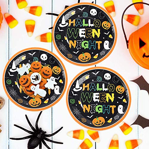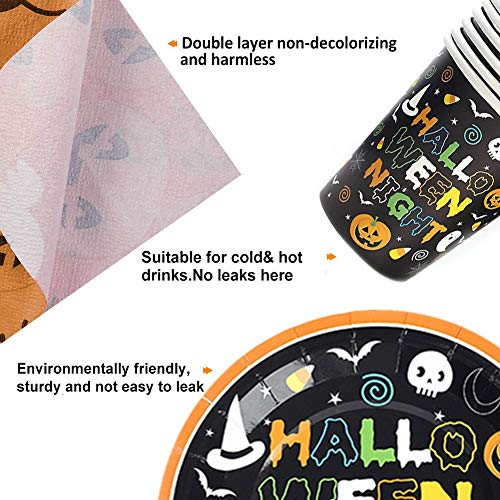 INTVN Set di stoviglie a Tema Halloween di Carta USA e Getta - Servizio per 24 Persone - Ottimo per Le Feste e Party - Set Completo di Tazze, 9 pollici Piatti, 7 pollici Piatti,tovaglioli e tovaglia