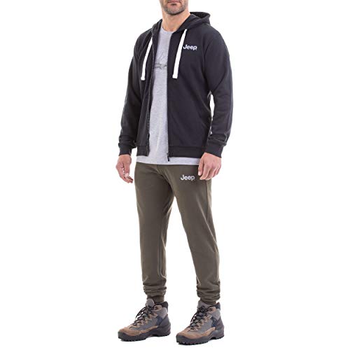 Jeep Invernale con Cappuccio E Zip Completa con Stampa Calandra sulla Schiena per, Maglia Uomo, Black/White, S