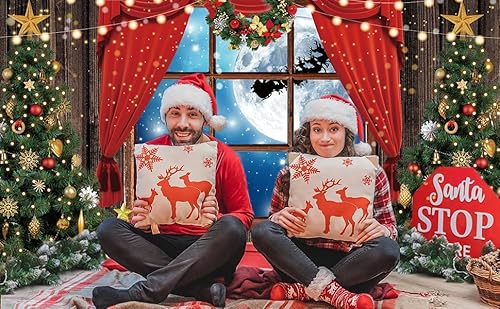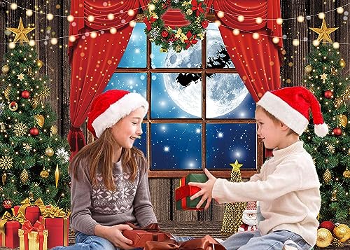 Inverno Buon Natale Backdrop Finestra di Natale Luna Notte Backdrop Albero di Natale Sfondo Santa Claus Fotografia Family Party Decorazione Forniture 2.1x1.5m