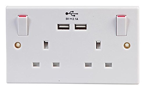 Invero Presa Frontale A Doppia Parete 2 Gang Presa 13A Con 2 Porte Di Uscita Usb 2.1A - Bianco