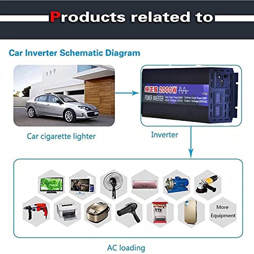 POWER INVERTER: Questo inverter è un trasformatore corrente che può convertire 12V / 24V DC in 110V / 220V AC. La corrente di uscita è applicabile a tutti i tipi di apparecchiature.Renderlo l'ultimo caricabatterie di viaggio auto per la guida su strade, vacanze o postazioni remote.