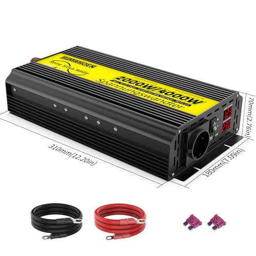 Inverter da 12V a 230V 2000w/4000w Convertitore di tensione ad onda sinusoidale pura, per casa, camper, camion, con connettore USB integrato da 5V/2.1A