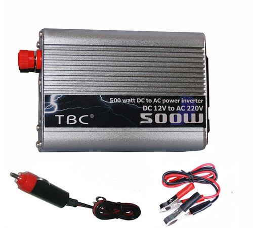 Input Voltage Range: DC10-15V Output Voltage Range: AC100-120V Maximum Continuous Power: 500W Surge Capacity: 1000W Output Frequency: 60±2Hz - 50±2Hz Output Waveform: modified sine wave No Load Current Draw: 90% Over Load Protect: yes Over Voltage Shutdown: yes Under Voltage Alarm: yes Under Voltage Cutout: yes Short Circuit Protect: yes Over Temperature Shutdown: yes Cooling Fan: yes Operating temperature range: 0°C to 40°C (32°F to 104°F) AC Receptacle: US Socket×2 Dimensions ( L x W x H ): 168×95×55mm Weight ( approx. ):0.9Kg