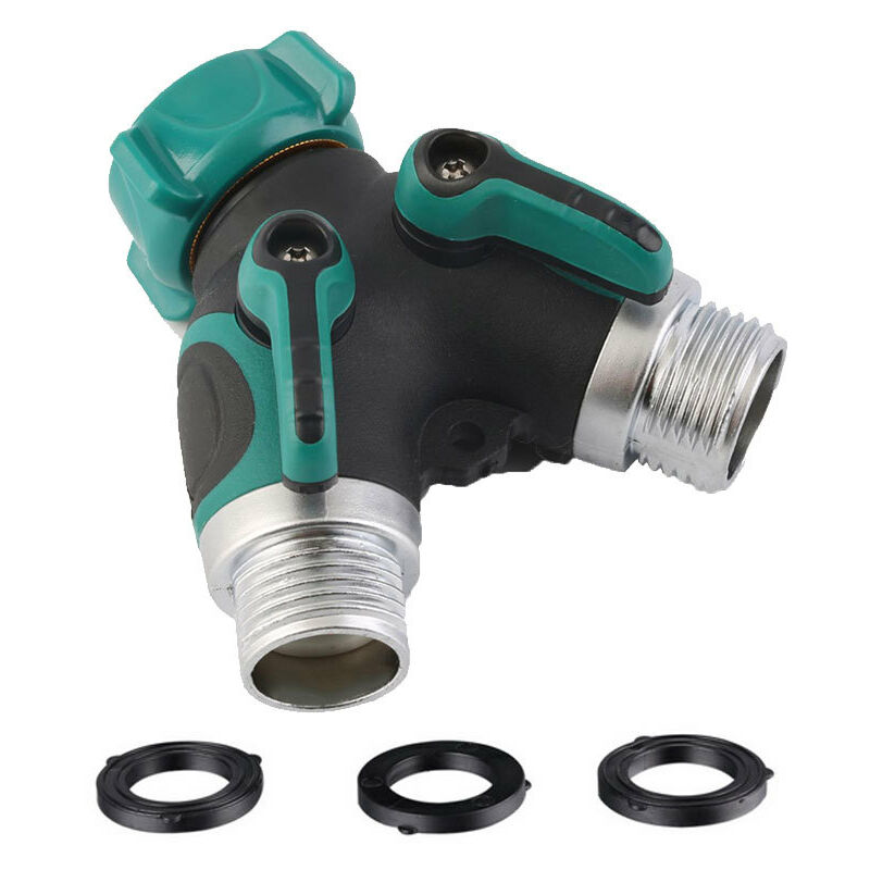 Y Connettore valvola a due corsie nella forma di Y Obiettivo: Tocca Inverter Specifiche tecniche: 3/4 "Innnessione d'acqua filo interno, uscita 2 3/4" esterna Acqua filettata Dimensione: 95 x 90 x 44 mm Peso: 167 g Materiale: corpo PP, encapsulation TPR, ingresso dell'acqua di rame placcato in alluminio, uscita acqua in lega di zinco In ingresso dell'acqua filo interno 3/4 ", superficie placcata in rame, resistente all'usura e Corrosione Rotazione flessibile, non è necessario tingere l'intero prodotto, è possibile collegare facilmente la valvola