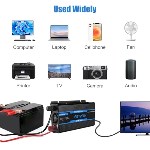 ►►【Inverter da 2200 W】 Questo inverter di potenza da 12V può convertire la batteria da 12 V a 220 V, fornirà fino a 1000 W di potenza continua e 2200 W (