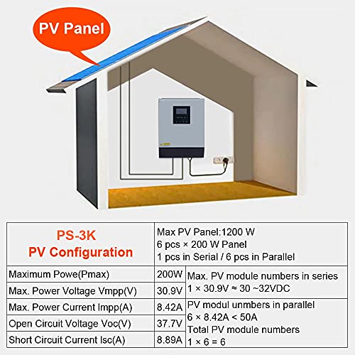 Y&H - Inverter ibrido 3KVA, DC24V a 220V, inverter a onda sinusoidale pura, regolatore di carica solare PWM integrato da 50 A e caricabatterie CA per uso domestico