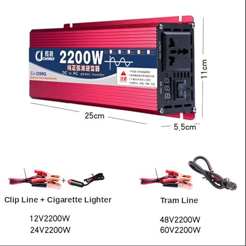 Inverter Di Potenza Da 2200 Watt, 12V 24V 48V Da 60V A 220V, Inverter Per Auto A Onda Sinusoidale, Prese CA, Convertitore Di Tensione Da Cc A CA, Cavo Di Raffreddamento In Rame Puro,60V