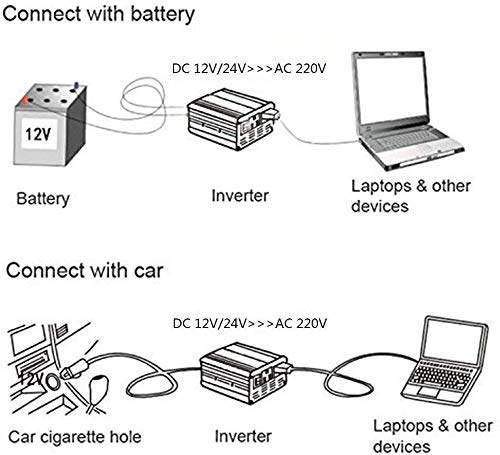 ➤ POTENTE INVERTER DI POTENZA: questo inverter a onda sinusoidale pura è un dispositivo trasformatore di corrente che converte 12 V / 24 V CC in 220 V CA. La corrente di uscita può essere utilizzata in una varietà di tipi di apparecchiature, rendendola il caricabatterie da viaggio per auto definitivo per viaggi su strada, vacanze o luoghi di lavoro remoti.