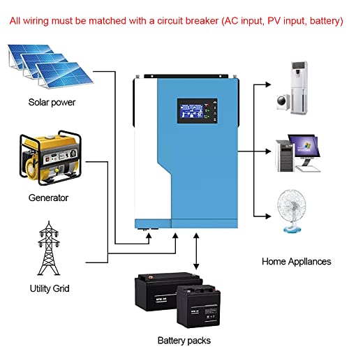 Y&H - Inverter solare ibrido 3,5 KVA, DC24 V a 220 V, inverter a onda sinusoidale pura, regolatore di carica solare WiFi MPPT 100 A integrato da 50 A e caricabatterie CA per uso domestico