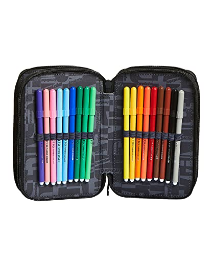 INVICTA S.P.A. Astuccio 3 Scomparti Invicta, Eco-Material, Streak, Nero, Completo di Matite, Penne, Pennarelli...