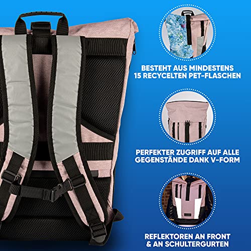 Invilus ® Zaino Rolltop in materiale riciclato e altamente riflettente [Sicuro durante la notte] Lo zaino perfetto per la stagione buia Per università, sport, lavoro o tempo libero, Colore: