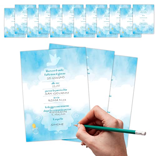 Nessun escluso dalla cerimonia di vostro figlio ✔️ - 32 Biglietti inviti battesimo sufficienti per invitare tutti i parenti . L'elegante biglietto formato A6 con grammatura da 300 gr è adatto per essere compilato sia con penna che a matita, il nostro kit battesimo completo è orgogliosamente prodotto Made In Italy .