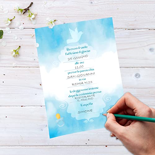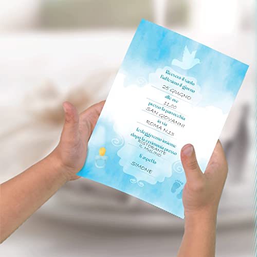 Inviti Battesimo Bambino Originali - 32 Biglietti Partecipazione Invito Battesimo Bimbo - Kit Battesimo Originale
