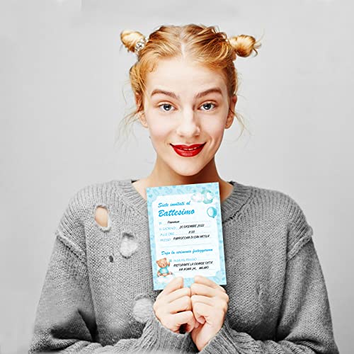 16pz Inviti Battesimo Bimbo Blu con Busta Biglietti Inviti Partecipazioni Battesimo Orsetto Bambino per Festa Originali