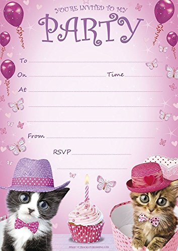 Inviti Festa di Compleanno A5 Misura Rosa micetti Gattini Torte - 20 Pezzi