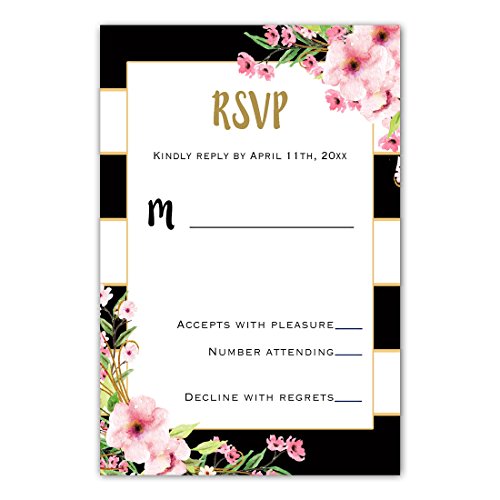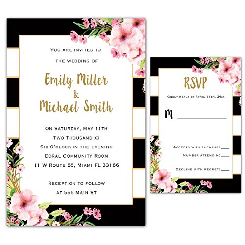 100 inviti di nozze blush rosa oro nero fiori design + buste + Response Cards set