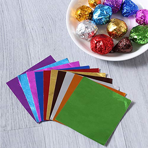 Facile da usare: le pellicole quadrate di alluminio da 10 x 10 cm sono perfette per premere intorno a diverse forme di caramelle e cioccolatini, risparmiando il fastidio di mettere i tuoi dolcetti in sacchetti di plastica. Basta mettere i pezzi di pellicola sul tavolo, metterli sulle caramelle e avvolgerli