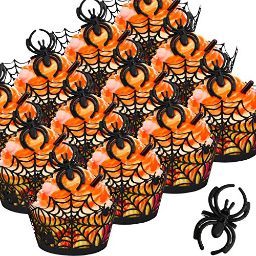 Elementi di Halloween: involucri di cupcake ragantela e la combinazione di anelli di ragno è il punto culminante della festa, abbinare con la vostra festa a tema e catturare più attenzione