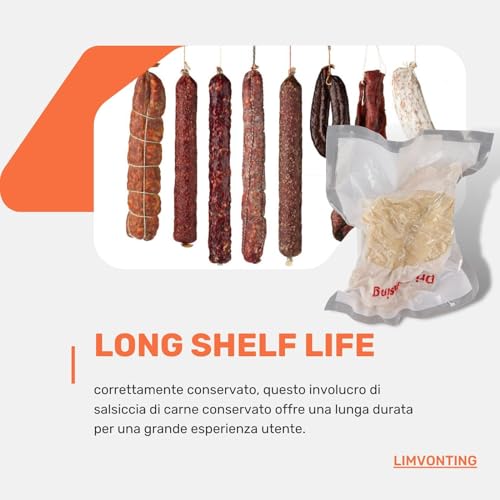 LONG SHELF LIFE: correttamente conservato, questo involucro di salsiccia di carne conservato offre una lunga durata per una grande esperienza utente.