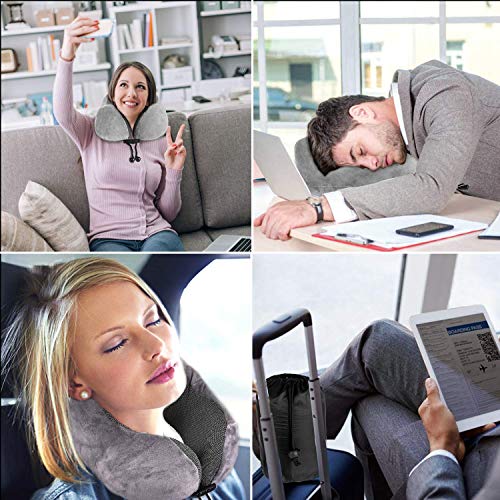 Invool - Cuscino da viaggio in memory foam, cuscino per collo a U, per aereo, auto, casa, ufficio, colore: grigio