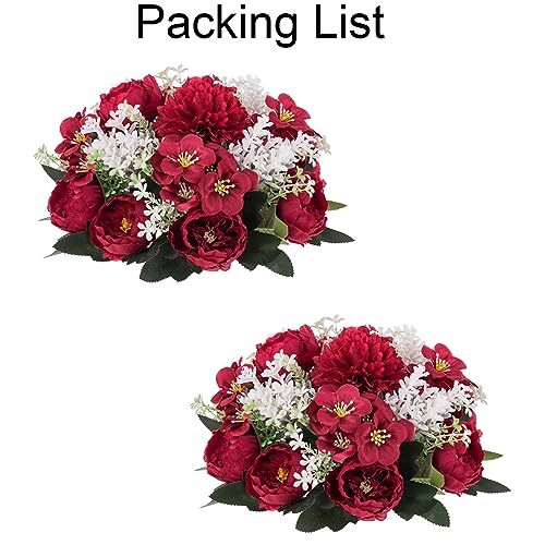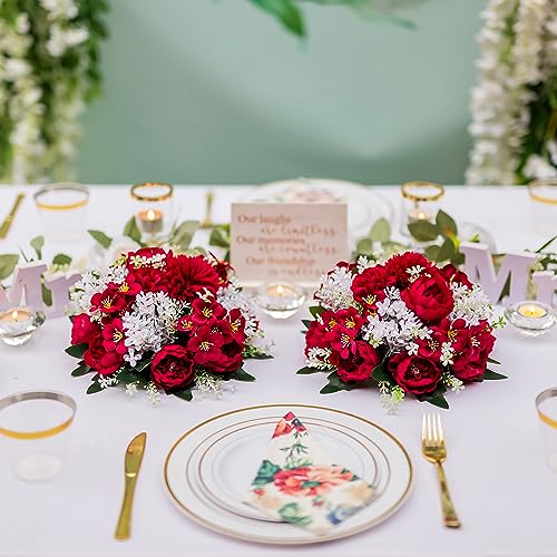 Inweder Fiori da matrimonio per centrotavola, 2 pezzi, fiori artificiali cremisi e bianchi, piccole palline di peonia per centrotavola, palline di fiori finti per composizioni floreali, bouquet per