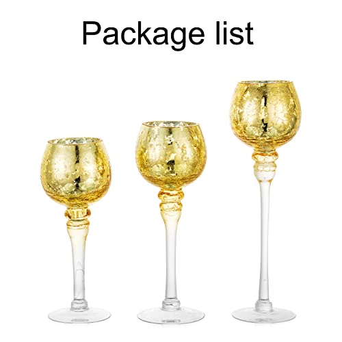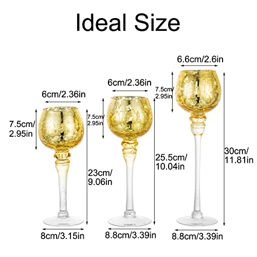Inweder Portalumini Porta Candele in Vetro - 3 Pezzi Portacandele Vetro Mercurio Per Centrotavola Portacandele Adatti Pilastri Candele Galleggianti Oro Portacandele Decorazione Della Casa Nozze Natale