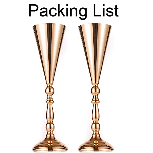 Inweder Vasi Tromba per Centrotavola Nozze - 2 Pezzi Vaso di Fiori in Metallo Dorato Decorazione Tavola Nozze Vaso Alto 42cm per Tavola Cerimonia Compleanno Anniversario Festa Decorazioni Casa