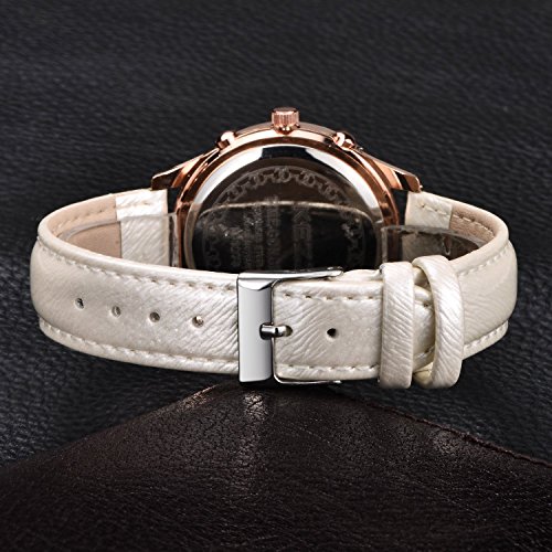 Inwet Moda Quarzo Orologio per Donna, Cristallo Quadrante Analogico Display e Bianco Cinturino in Pelle