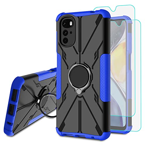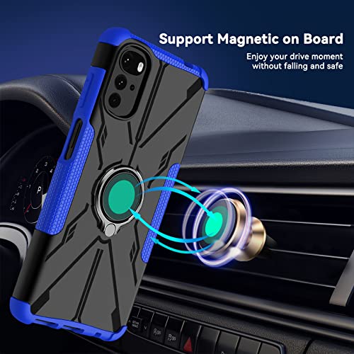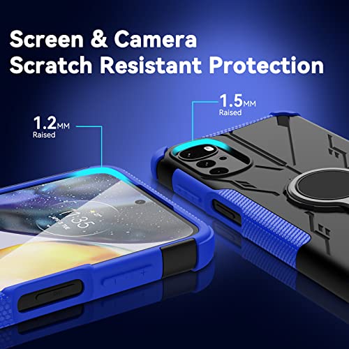 Iokmax Custodia per Motorola Moto G22 con 2 pellicole proteggi schermo, 360° anello magnetico supporto resistente antiurto robusta custodia paraurti per Motorola Moto G22, blu