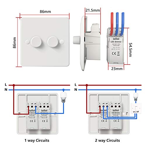 Iolloi Interruttore dimmer a LED a 2 bande, interruttore dimmer rotativo per LED dimmerabile, non richiede neutro, 2 vie, 100 Watt (1-10 LED)