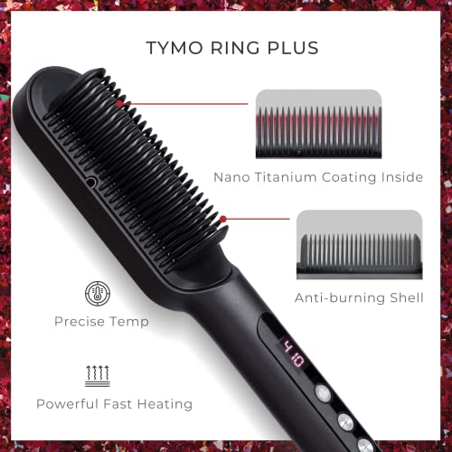 TYMO RING PLUS Ionic Hair Straightener Comb - spazzola e ferro per capelli con rivestimento in nano titanio per un calore uniforme, 9 impostazioni di temperatura e schermo LED