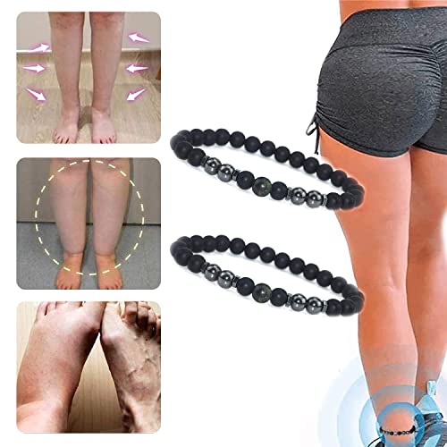 IOPYKKOA Cavigliera in Ossidiana Nera Anti-gonfiore da 2 Pezzi, cavigliera Magnetica Regolabile per la Perdita di Peso, cavigliera Magnetica per Dimagrimento Sanitario per Uomini e Donne (Nero)