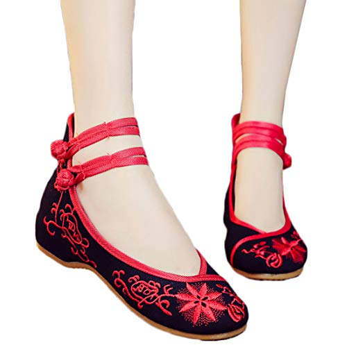 IOSHAPO Da Donna Scarpe Ricamate Scarpe Singole Scarpe da Sera Confortevole Resistente all'Usura Prendere Fibbia Scarpe da Ballo