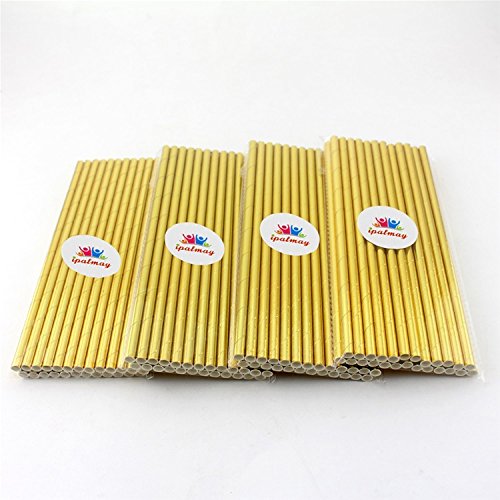 Ipalmay Cannucce di carta, resistenti, confezione da 100, Gold Solid, 100 pieces