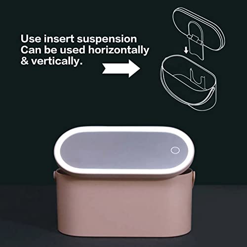 Ipalmay Multifunationl - Organizer per trucco con specchio cosmetico a led e luce LED rimovibile, organizer portatile per cosmetici per donne e ragazze, in viaggio, colore: rosa