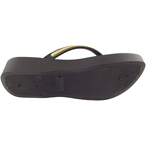 Ipanema Womens Black/Gold Mesh Wedge Flip Flops-UK 6