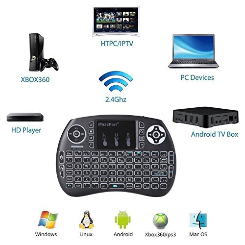IPazzPort 2.4Ghz Mini Tastiera Retroilluminata Senza Fili - [ Layout Italian ] Wireless Keyboard Ergonomica Mouse Touchpad per Smart TV, PC, Xbox 360, PS3, Google/Android TV Box, HTPC/IPTV - Nero