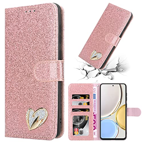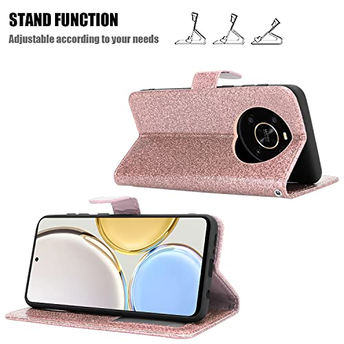 IPEAK Custodia per Honor Magic 4 Lite 5G Phone Shiny Leather Bling Glitter Book Flip Stand Card Custodia protettiva per Honor Magic 4 Lite 5G Phone Case (Rosegold)