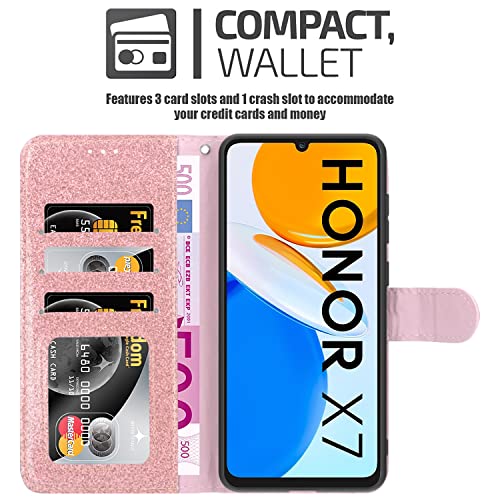 IPEAK Custodia per Honor X7 Telefono in pelle lucida Bling Glitter Book Flip Stand Card Wallet Cover protettiva per HONOR X7 Phone (oro rosa)