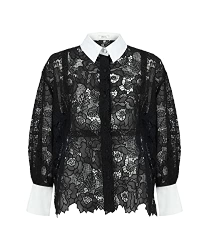 IPEKYOL Button Detail Lace Blouse Camicia, Nero, 44 Donna
