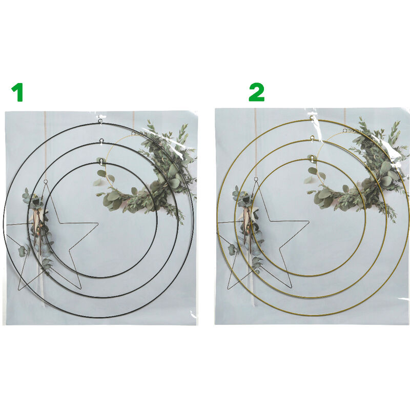 NB: IL PRODOTTO È SINGOLO E NON VENDUTO IN SET, SCEGLIERE NELLE NOTE IL NUMERO DELLA FANTASIA CHE SI DESIDERA ACQUISTARE. Set 3 ghirlande in ferro 50 cm Realizzate in metallo, diametro 50 centimetri, 2 fantasie disponibili NB: IL PRODOTTO È SINGOLO E NON VENDUTO IN SET, SCEGLIERE NELLE NOTE IL NUMERO DELLA FANTASIA CHE SI DESIDERA ACQUISTARE.